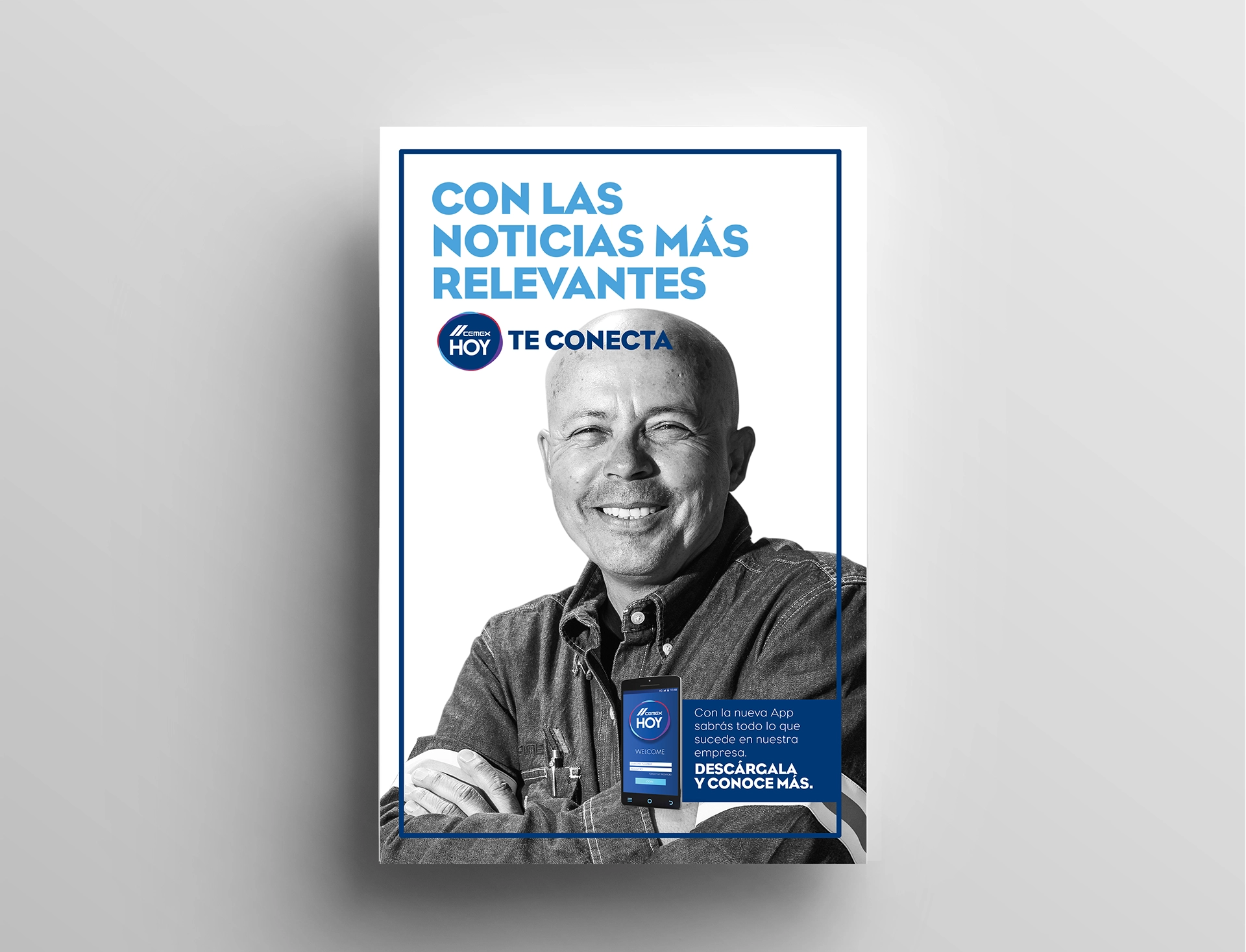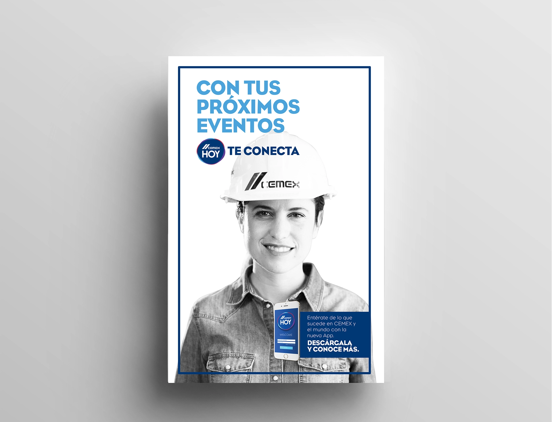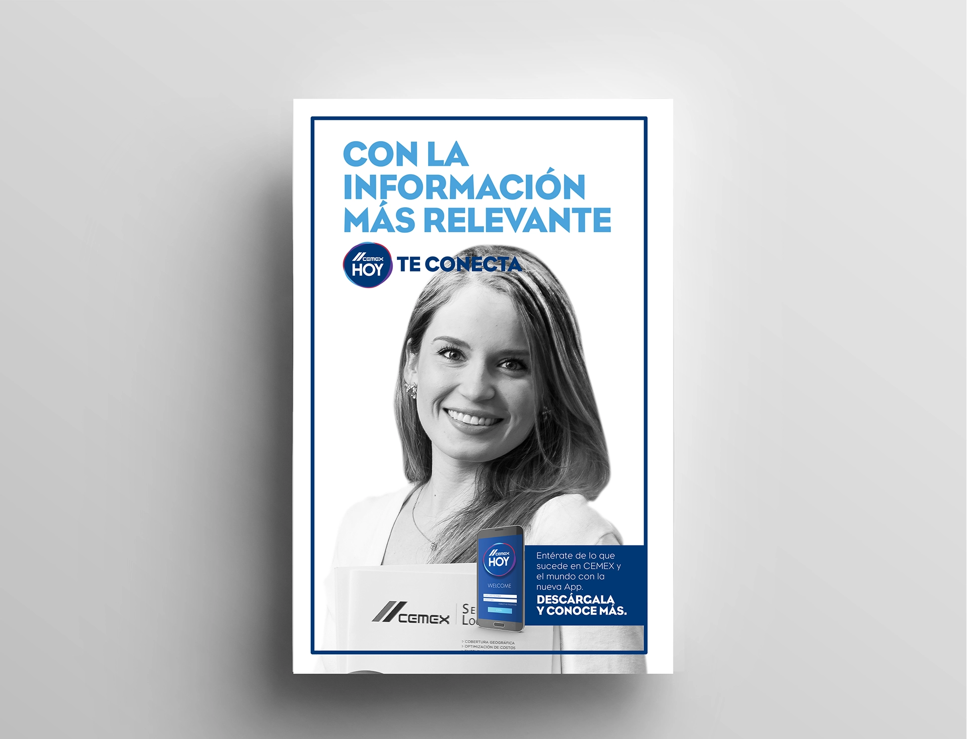 Desarrollo de la identidad para una campaña de una plataforma interna diseñada para conectar a los colaboradores de todos los niveles dentro de Cemex. Con un enfoque humano y accesible, “Cemex Hoy te conecta” refuerza la comunicación interna a través de un sistema visual dinámico que fomenta la transparencia, el sentido de pertenencia y el acceso a la información clave de la empresa.